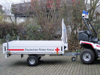 Zum Quad dazu gehörte ein ebenfalls in Eigenleistung ausgebauter Anhänger. Dieser erfülle hauptsächlich zwei Aufgaben: Das Quad über längere Wegstrecken zu transportieren und, wenn das Quad abgeladen ist, das Retten und transportieren verletzter Personen aus unwegsamen Gelände. Dazu war auf dem Anhänger eine Schleifkorbtrage verlastet.