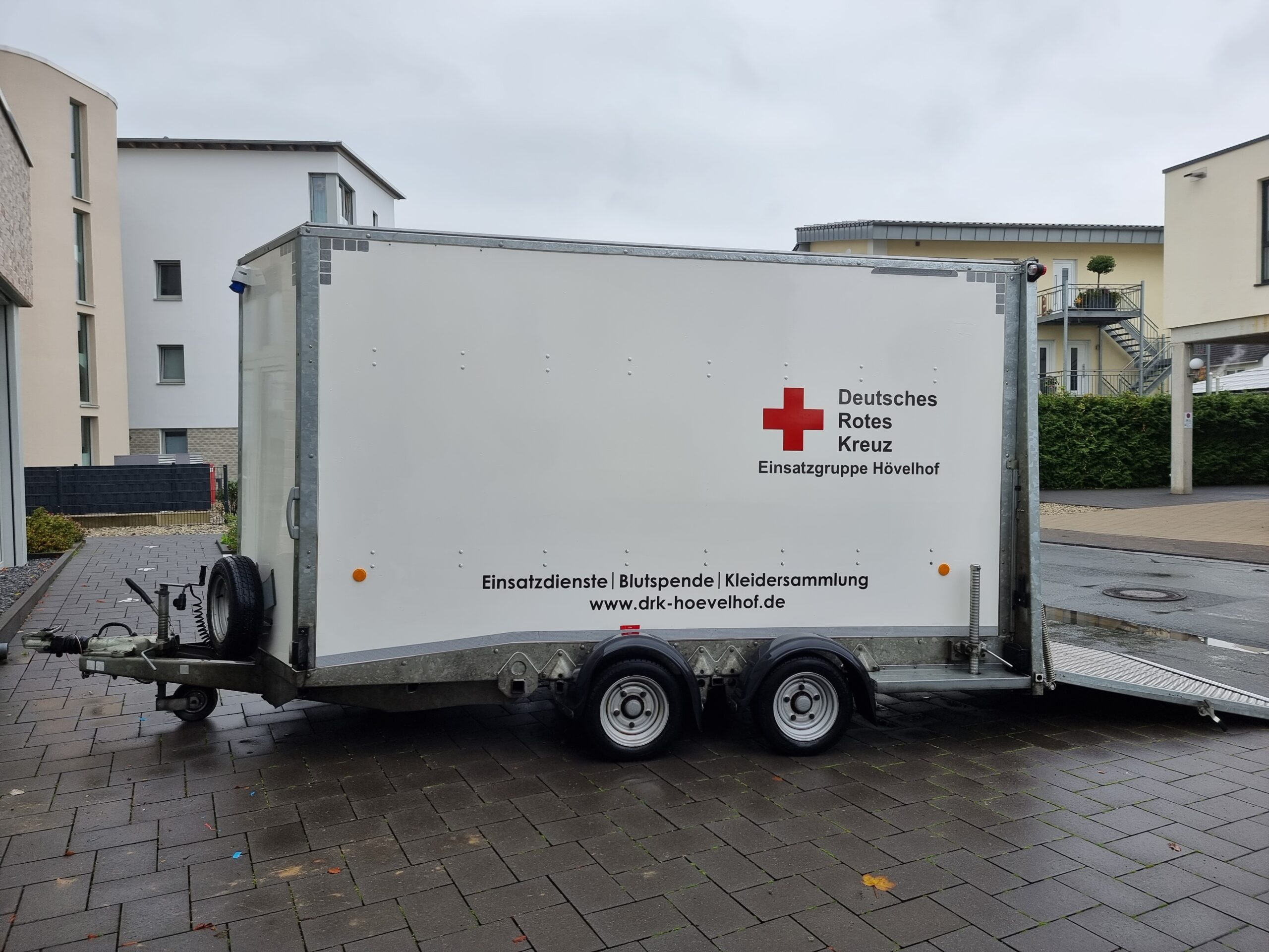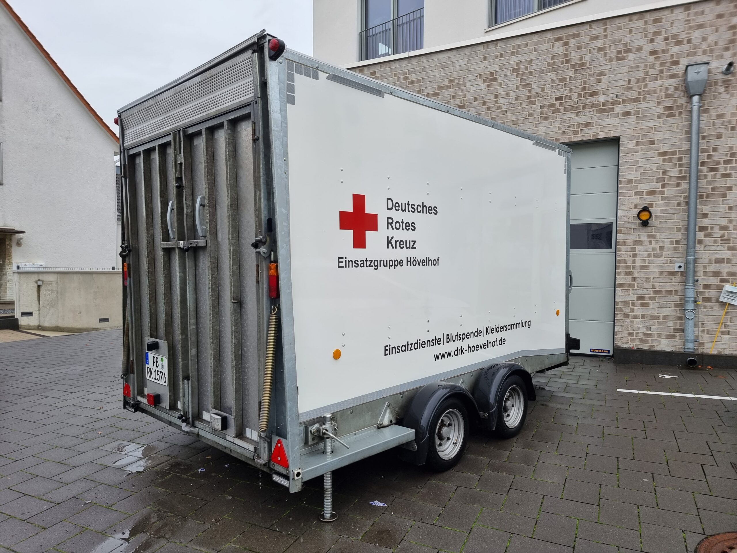 Unser großer Anhänger ist ein wahres Multitalent, welches meistens unauffällig im Hintergund arbeitet. Durch sein riesiges Ladevolumen und die hohe Zuladung ist er perfekt für die Altkleidersammlung. Auch für Logistikaufgaben außerhalb von Einsätzen ist er gut geeignet; seine LED-Innenraumbeleuchtung ermöglicht sicheres Arbeiten auch nachts oder in der dunklen Jahreszeit.
