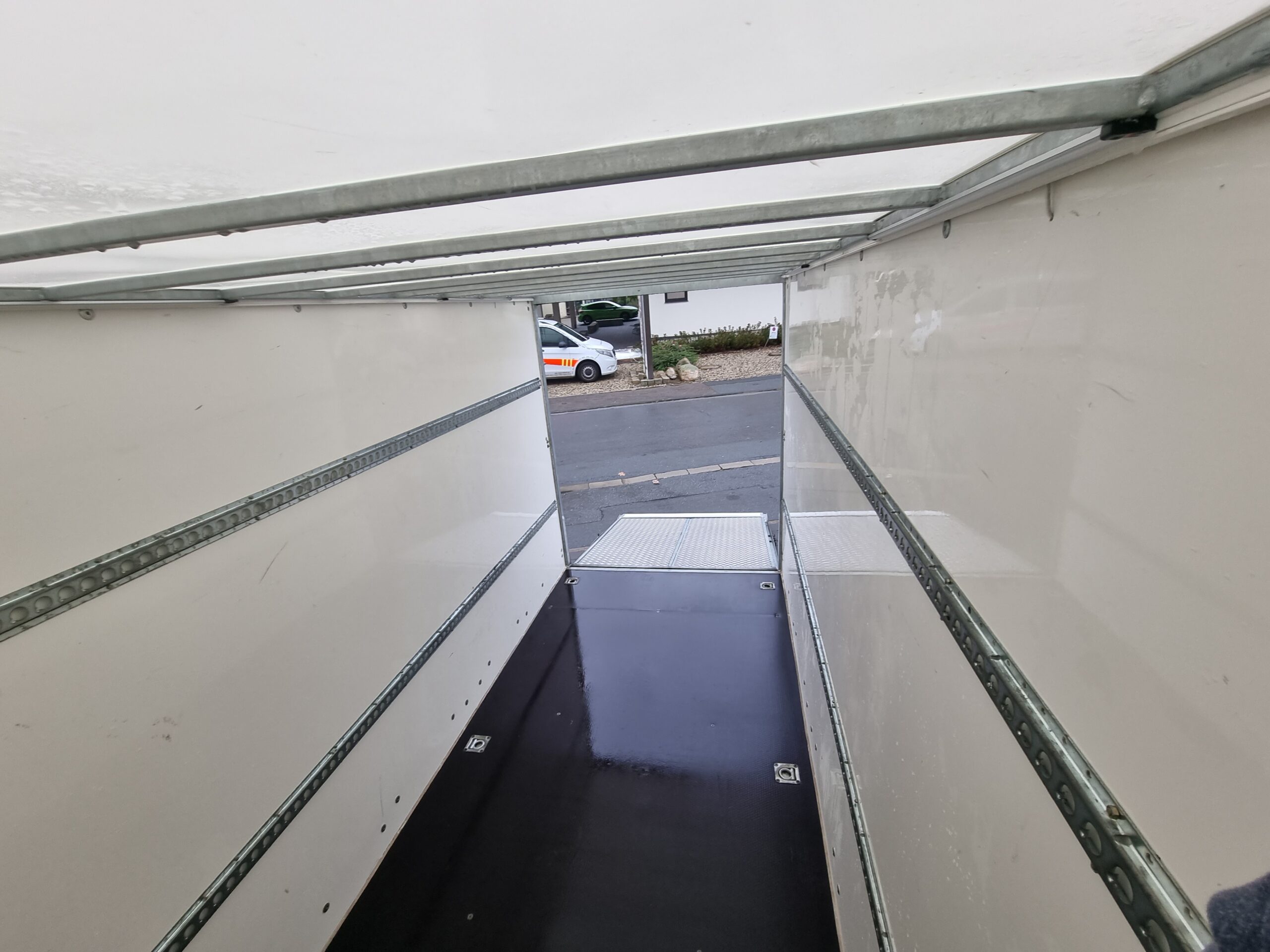 6 Zurrösen im Boden und durchgehende Zurrschienen an den Seitenwänden