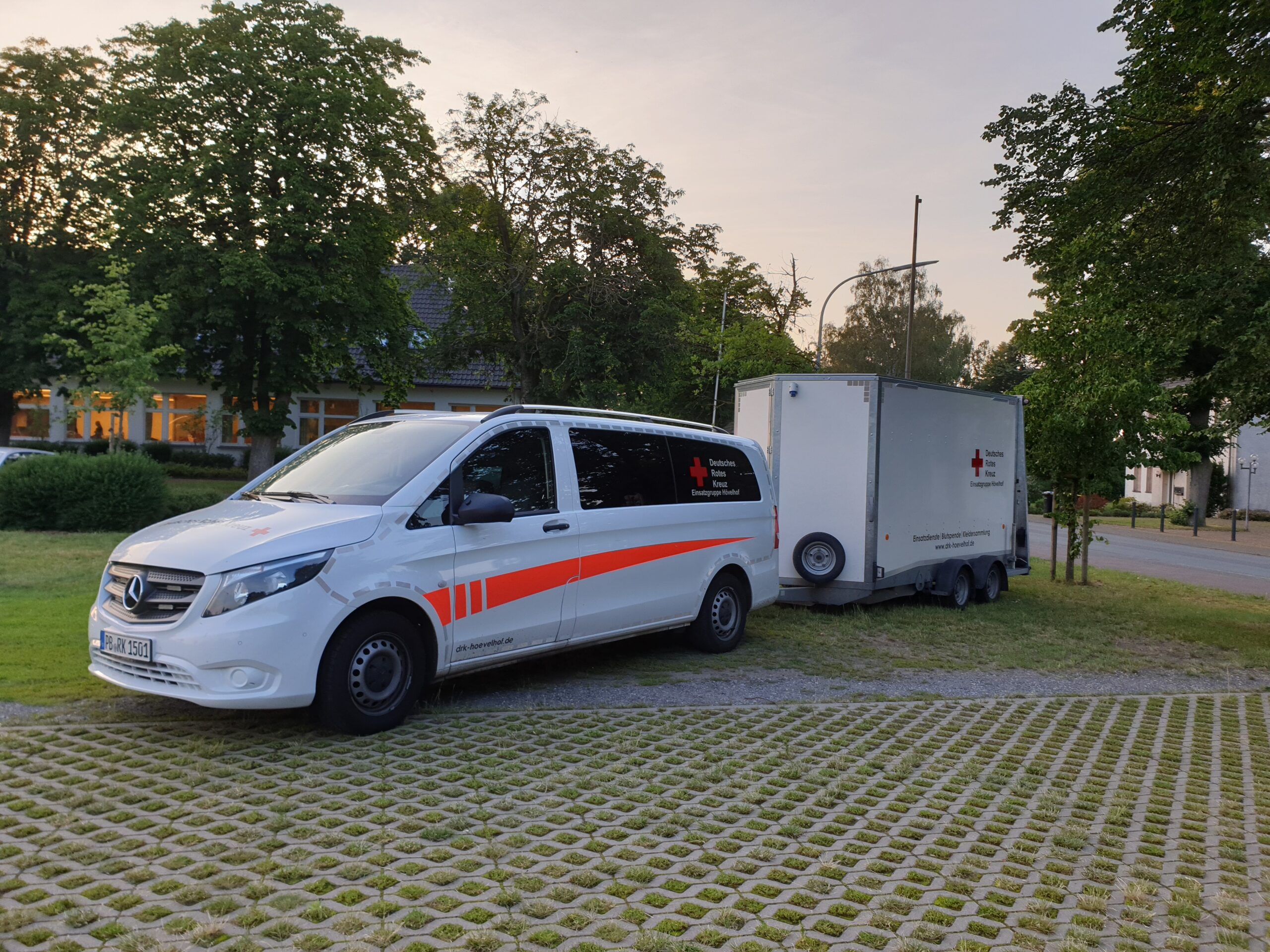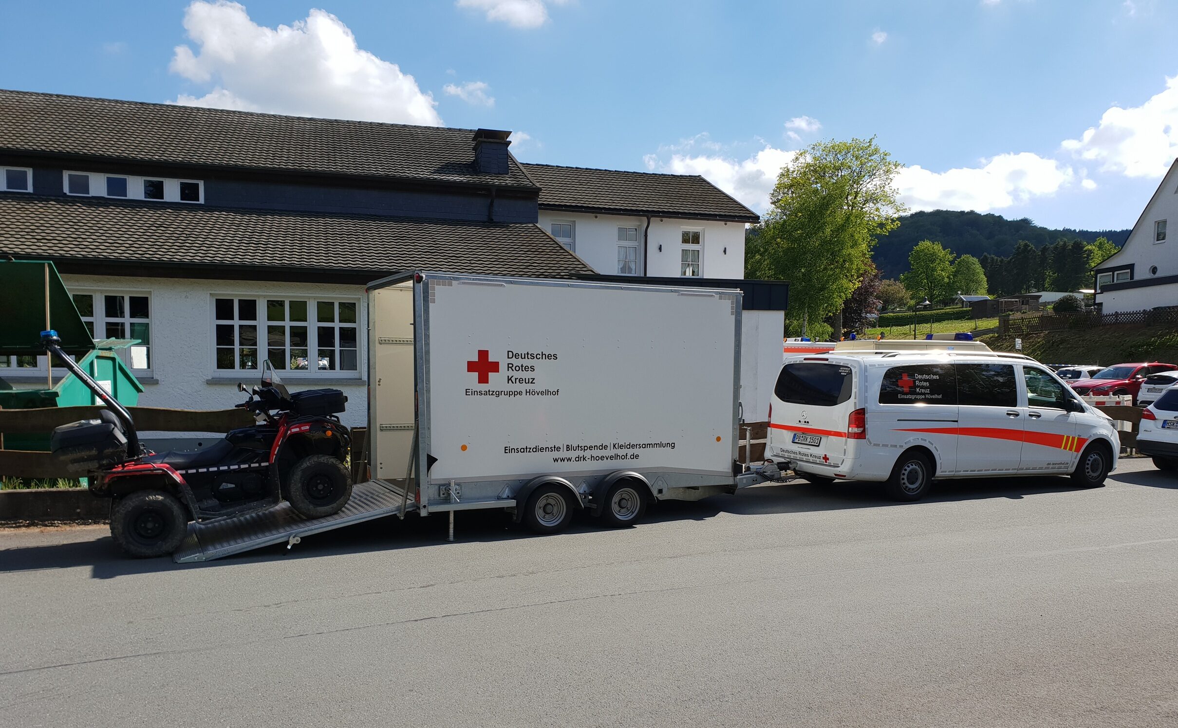 Durch die Größe, das hohe Gewicht (BE-Führerschein erforderlich) und die nur eingeschränkte Verfügbarkeit z.B. aufgrund der Altkleidersammlung ist das jedoch keine optimale Lösung. Perspektivisch soll für das Quad wieder ein Anhänger (<750kg zGG) beschafft werden, welcher nicht nur das Quad, sondern auch einen liegenden Patienten transportieren kann, ähnlich dem Anhänger unseres alten Quads.